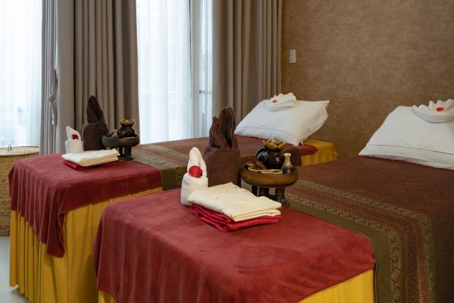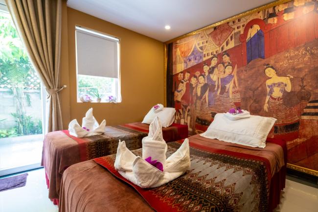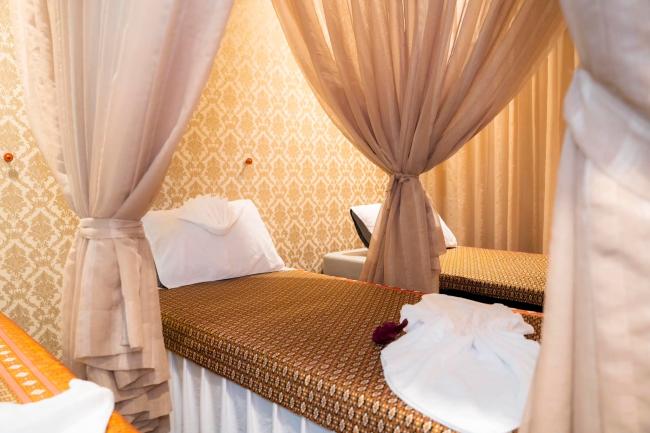 - THAI MASSAGE : Là sự kết hợp giữa yoga gian cơ kiểu Thái và liệu pháp mát-xa giúp làm mềm những khối cơ căng cứng, đau nhức. Liệu pháp này là một sự lựa chọn tốt, giúp lấy lại sự cân bằng và làm cho cơ thể trờ nên linh hoạt hơn cũng như giúp những khối cơ bị chèn ép lâu ngày trở nên mềm dẻo hơn.